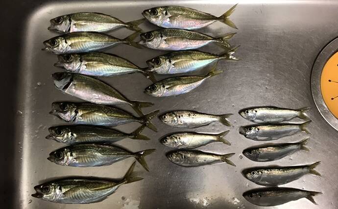 河和港 サビキ釣りの釣果 サバが大漁 プラス 小アジも フィッシング遊